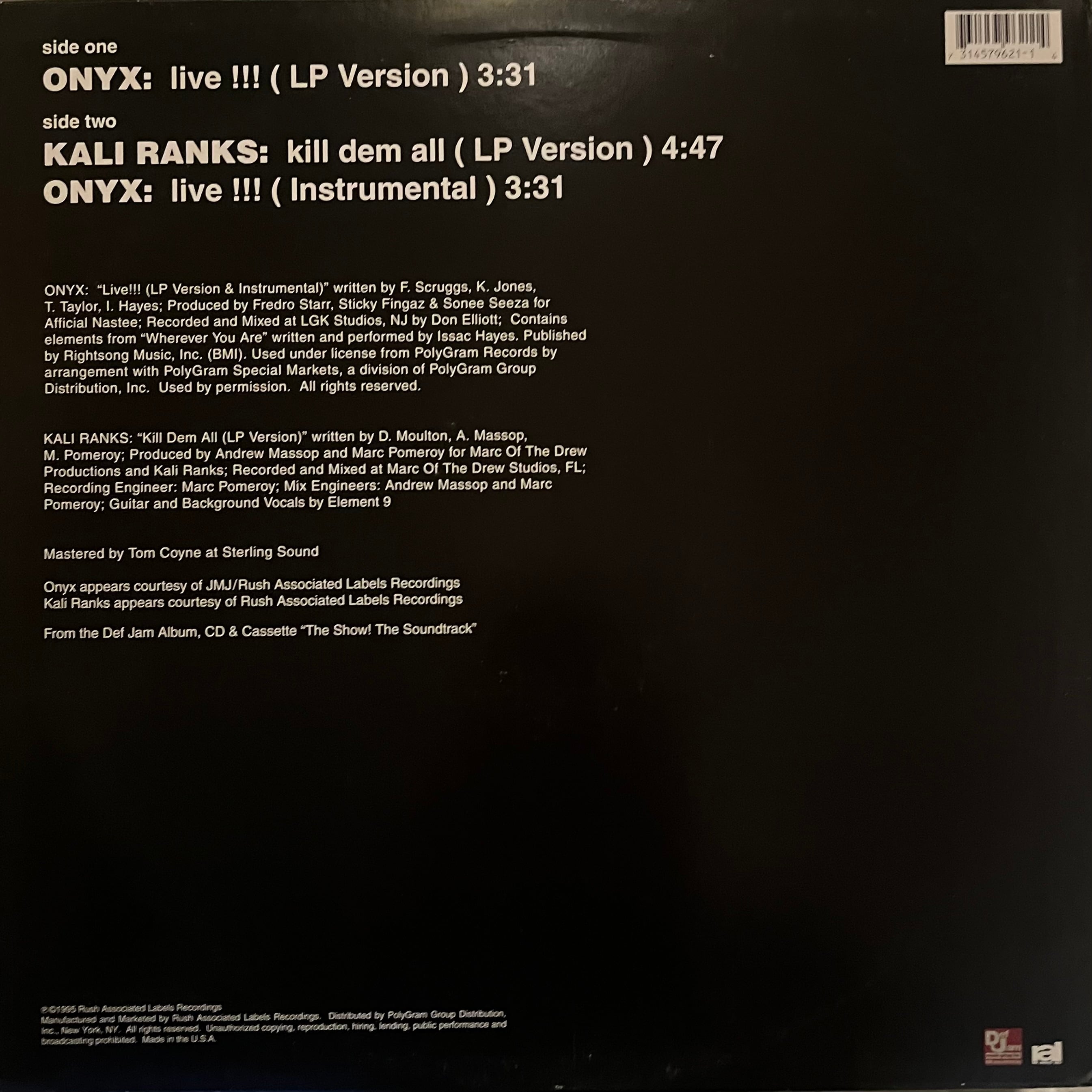 Onyx / Kali Ranks – Live!!! / Kill Dem All (12")