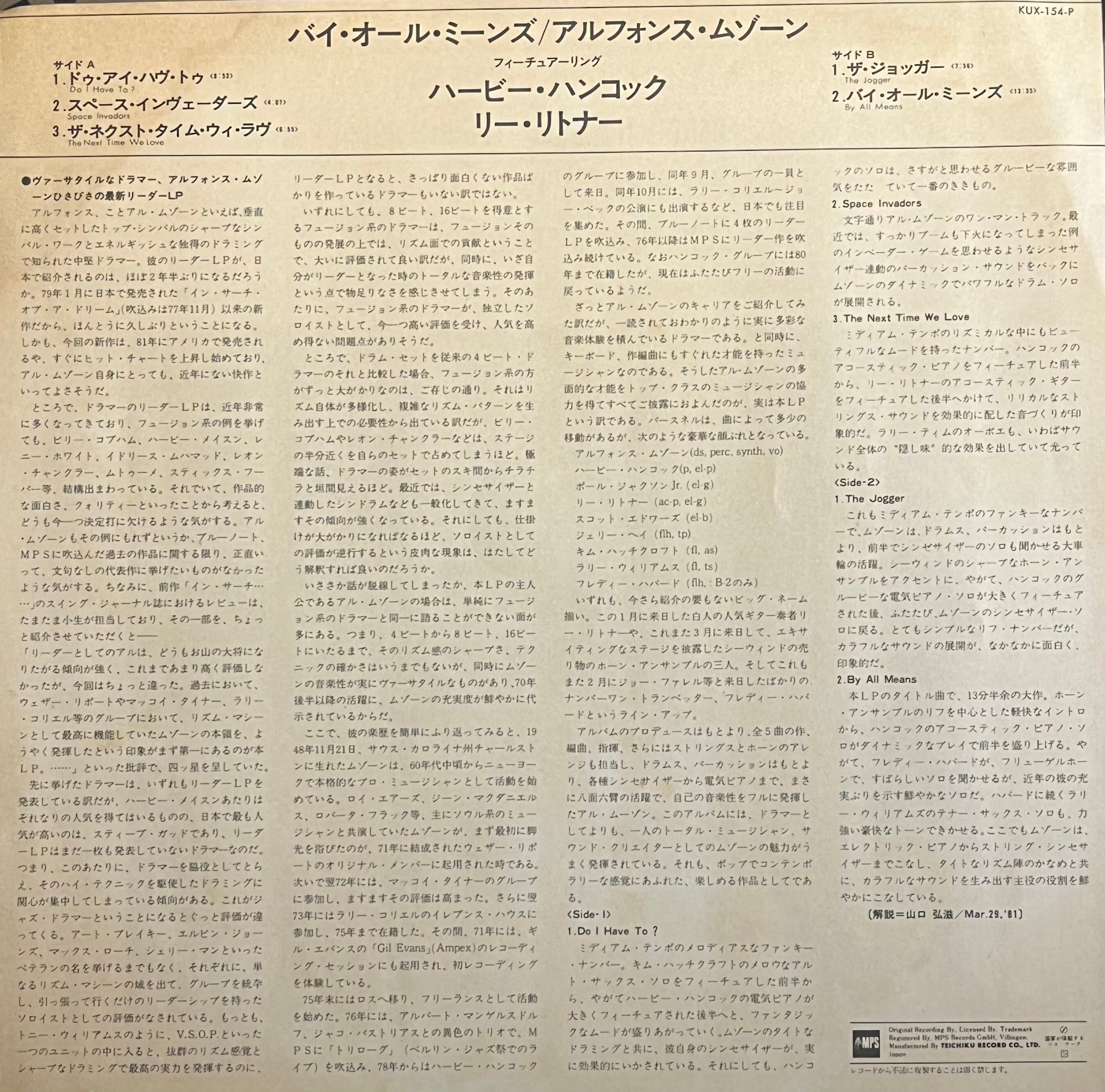 (アルフォンス・ムゾーン) Alphonse Mouzon – (バイ・オール・ミーンズ) By All Means (LP)