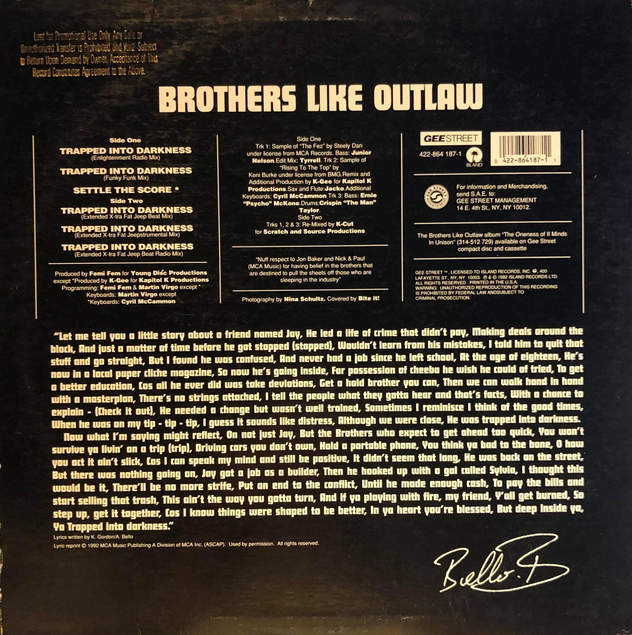 Brothers Like Outlaw – Trapped Into Darkness (12")