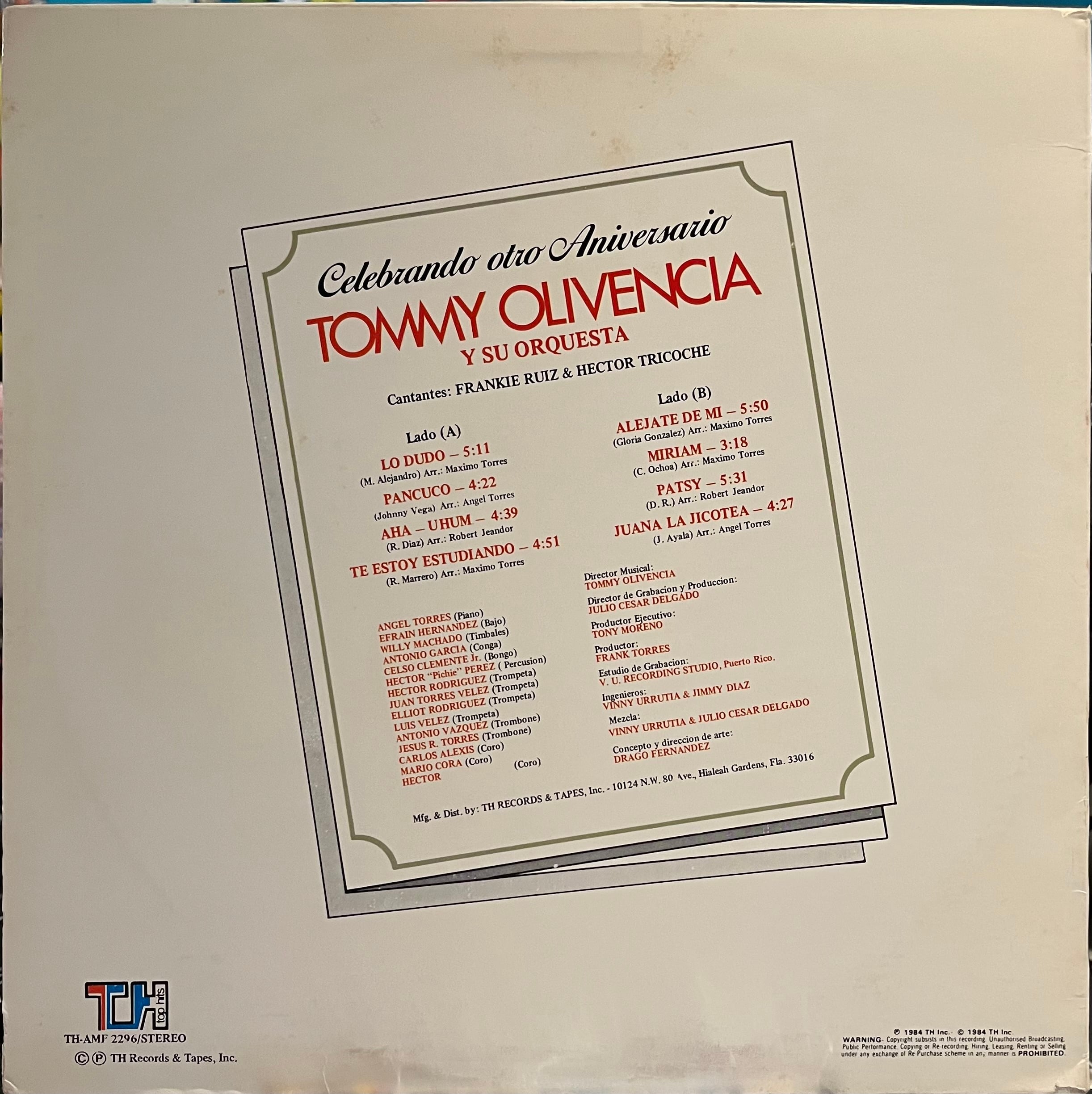 Tommy Olivencia Y Su Orquesta Cantantes: Frankie Ruiz & Hector Tricoche – Celebrando Otro Aniversario (LP)